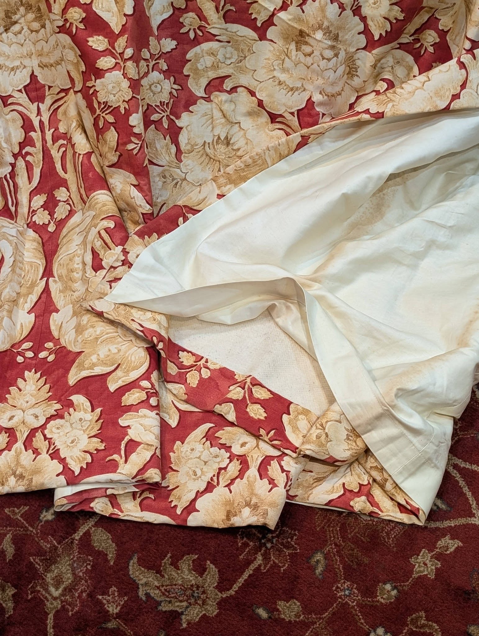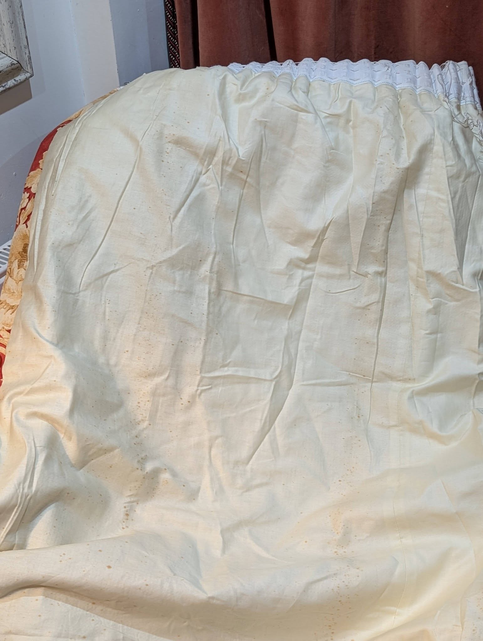 The linings of the curtains are in good overall condition with no significant damage, marks or stains except for some spotting which we have pictured – Rating 8.75/10